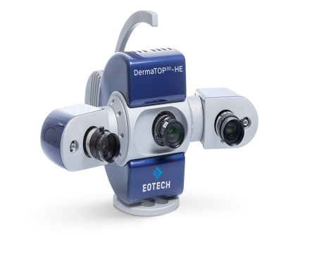 皮膚快速成像分析系統(tǒng)DermaTOP采用條紋投影測量技術(Fringe Projection)檢測皮 膚的皺紋、毛孔、皮紋、眼袋、皮膚蜂窩狀態(tài)、唇紋等參數(shù)。它是一種非接觸的快速測量方 法,能進行三維皮膚快速成像,采用藍色光源,一秒鐘內完成測量。VISIOFACE V4 通過頭部 傳感器、兩個耳部傳感器和面部激光定位功能使DermaTOP系統(tǒng)具有非常好的臉部二次定位功能,高分辨率的鏡頭和條紋投影器可以進行非常好的調整和固定,使整個系統(tǒng)更加穩(wěn)定、 精確和可靠。