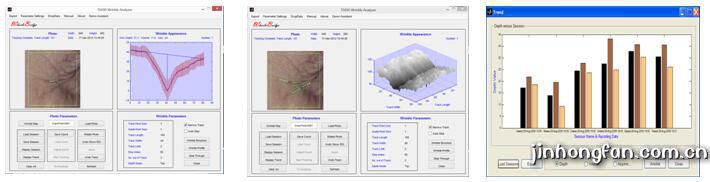 6. 皺紋分析軟件包:該軟件包可以追蹤皺紋,顯示皺紋輪廓,可以用來比較使用除皺化妝品或治療前后皺紋的變化。