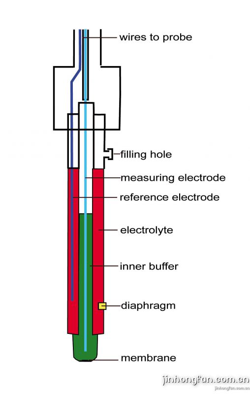 酸堿度的測試原理是通過一個玻璃電極和參比電極做成一體的特殊測試探頭,頂端由一個 半透膜構(gòu)成,該半透膜將探頭內(nèi)部的緩沖液和外部被測皮膚表面所形成的被測溶液分開,但外部被測溶液中的氫離子H+卻可以通過該半透膜,從而進行酸堿度pH值的測定。